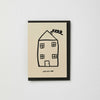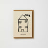 A new home/house card with an illustrated picture of a house on a cream/beige background.